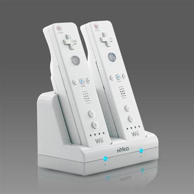 Charge Station for Wii is a Charging Dock and 2 rechargeable batteries for Wii...Easily charge and store your Wii Remotes with Nyko's Charge Station for Wii. The Charge Station includes 2 NiMH batteries, exclusively designed for the Wii Remote, each providing up to 25 hours of play time. Each battery is easily recharged by placing the Wii Remote in the charging dock. The charging dock conveniently plugs into any standard wall outlet, allowing for rapid recharging of both batteries in 8 hours. The Charge Station includes 2 custom battery covers with contact pass-through points so you can charge the batteries while they are still in the remote. Each battery cover is also rubberized for superior grip during intense gaming sessions. The Charge Station matches the decor and styling of the Wii, and is small enough to fit in any home entertainment center.