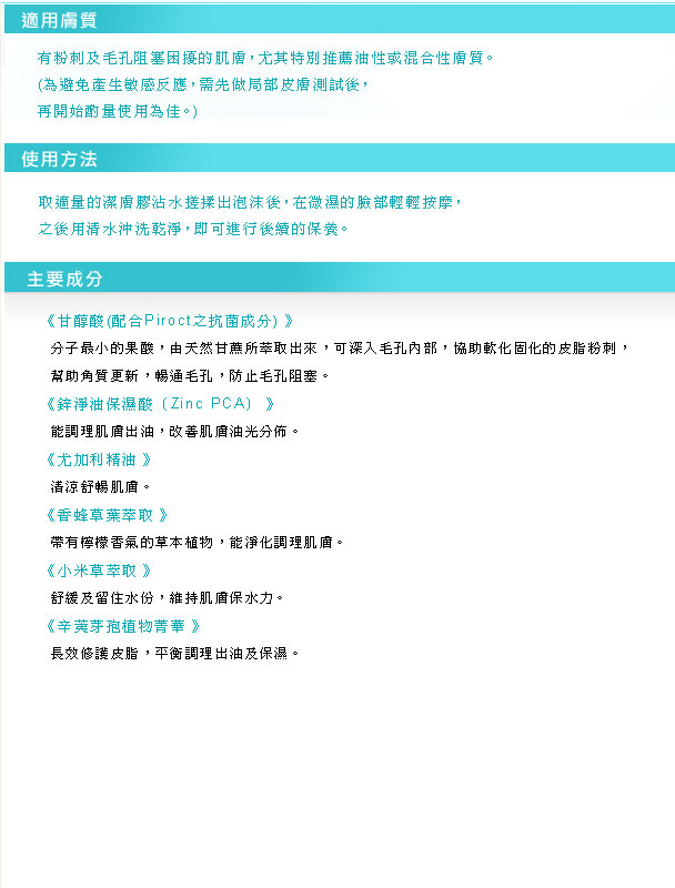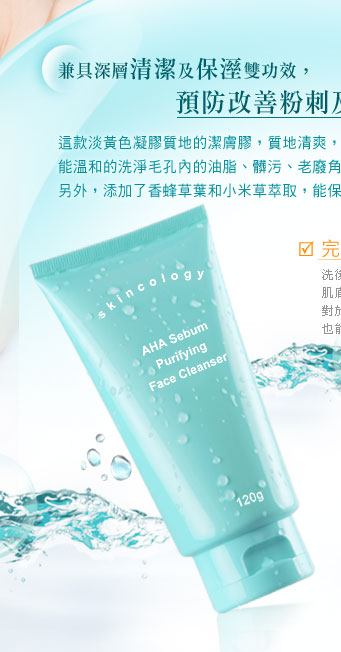 Directions: Apply a moderate amount to wet face and gently massage to cover the entire face. Rinse clean with water. Pat dry and continue with Skincology AHA Sebum Purifying lotion for best result.