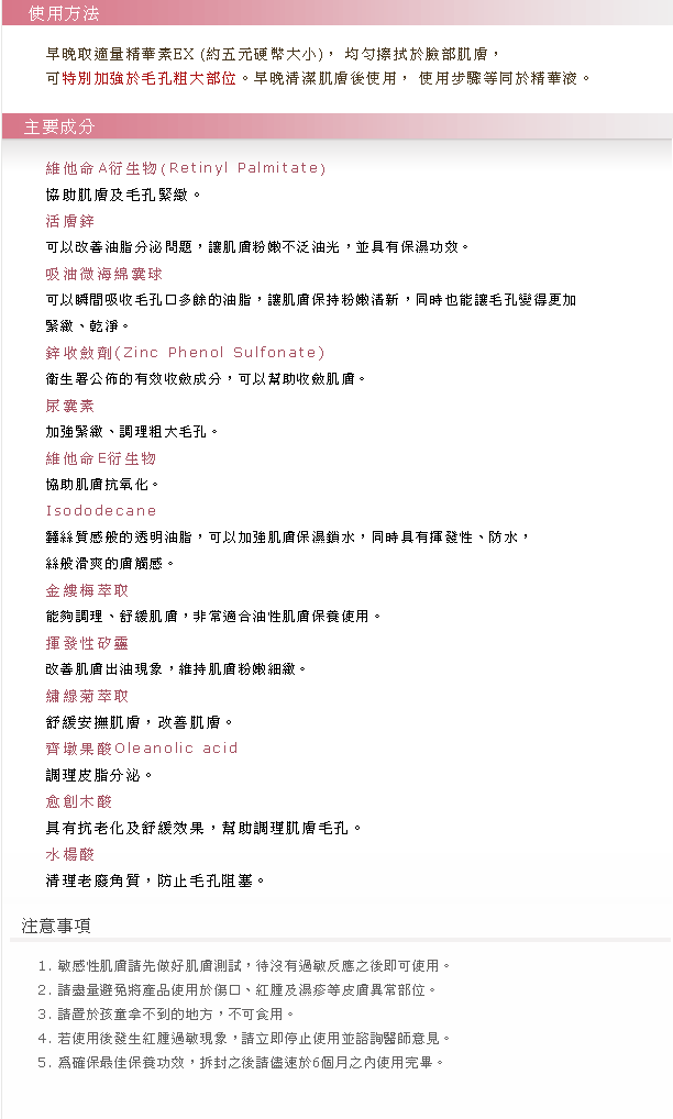 Brand new formula. This lightweight oil-free serum immediately and over time minimizes the appearance of enlarged pores due to excess sebum production or from aging or breakdown in the collagen lattice. It contains micro vitamin A derivative that minimizes appearance of pores over the long term by repairing collagen struture around pore wall. Immediately minimizing the appearance of pores. Exfoliates dead skin cells to prevent furture clogging and prevent build-up.