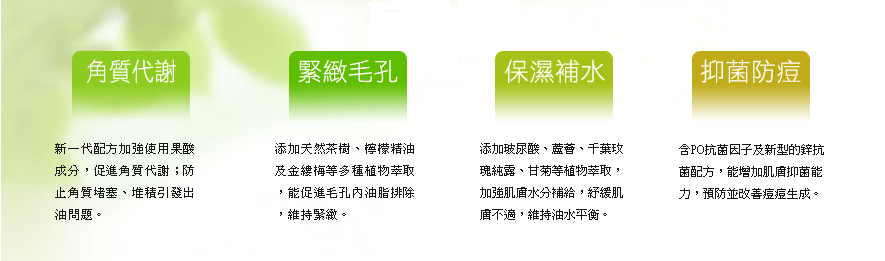 PO抗菌因子 (Piroctone Olamine) 能抑制痘菌生長,預防面皰、青春痘的產生。 |