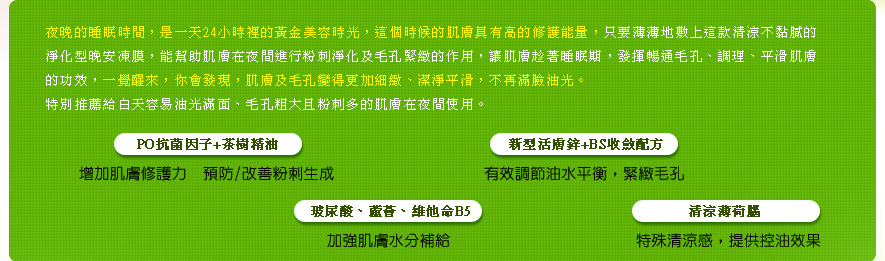 This deep pores claensing night gel mask is an anti-septic and detox face treatment that leaves the skin and pore pure and refined. It is infused with witch hazel, aloe and cucumber extracts and zinc gluconate that melt into the skin when applied to face, helpingto hydrate skin and regulate the sebum flow, and piroctone olamine improve the acne and breakout. Every morning when you wake up, you will feel more even, pure, matte and "poreless" skin.