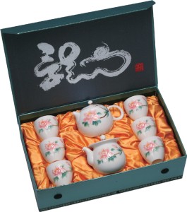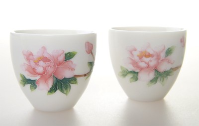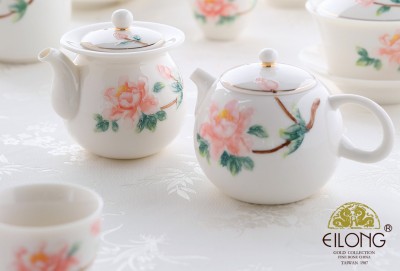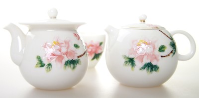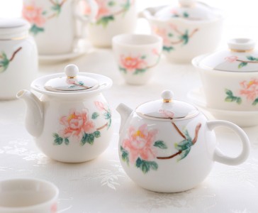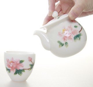 FINE CHINA PORCELAIN TEA SET WITH HANDPAINTED PINK PEONY