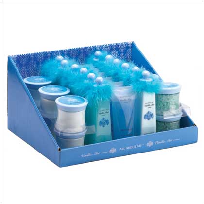 Everyone deserves the star treatment every now and then, and these luscious luxuries delight anyones inner diva! Rich vanilla mist fragrance adds sophistication to bath crystals, shower gel, bubble bath and body lotion. Display unit includes: 6.1 fl. oz. body butter, 6.1 fl. oz. bubble bath, 6.1 fl. oz. shower gel, 6.1 fl. oz. body lotion, and 7.1 oz. bath crystals.