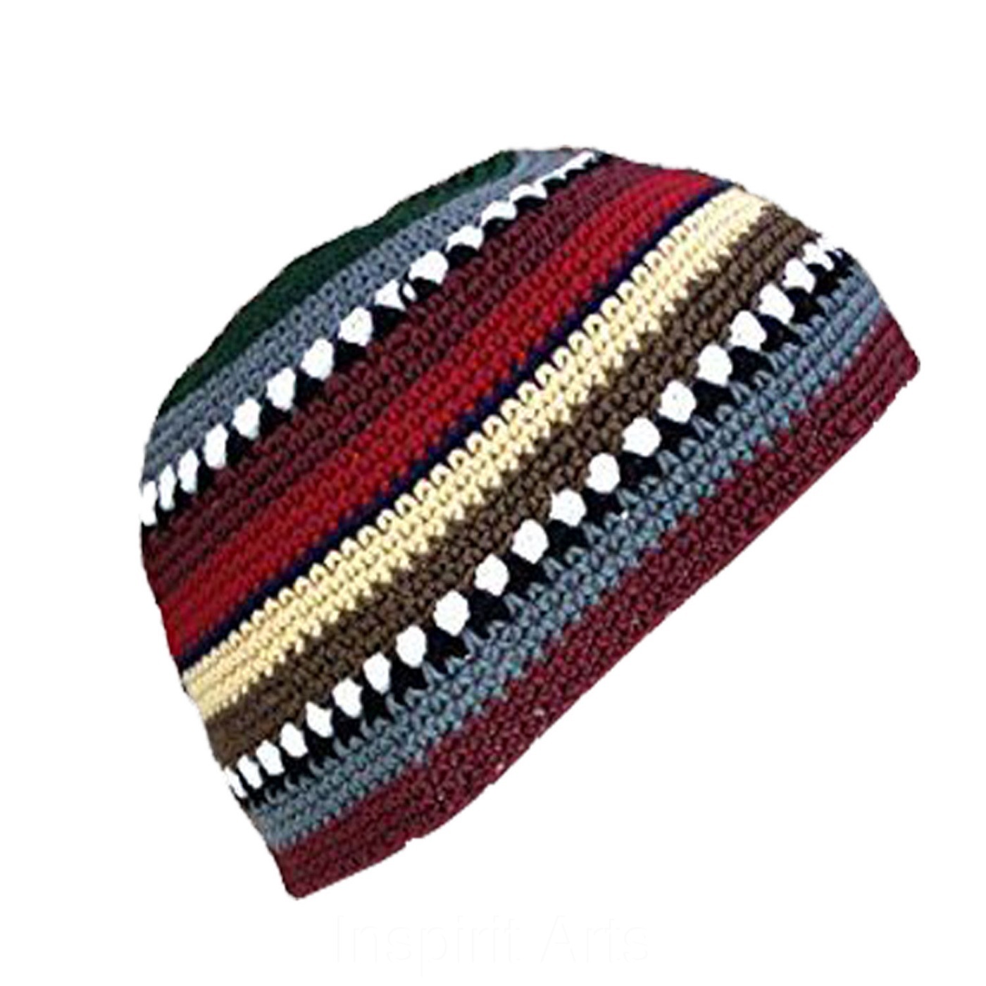 Large-Long Skull Cap Beanie Hat Crochet 100% Breathable Cotton Dark Earthtone Multicolor