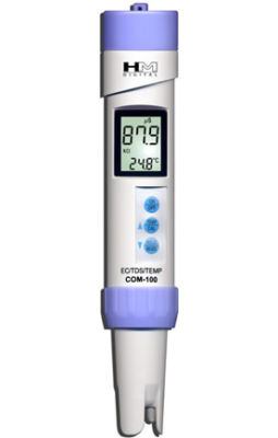 - Factory Calibrated: The COM-100 meter is calibrated with a 1413 µS solution. The meter can be recalibrated with digital calibration using the push buttons, rather than a screwdriver.