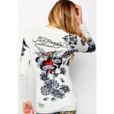 V Neck White Ed Hardy Long Sleeved Top