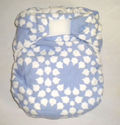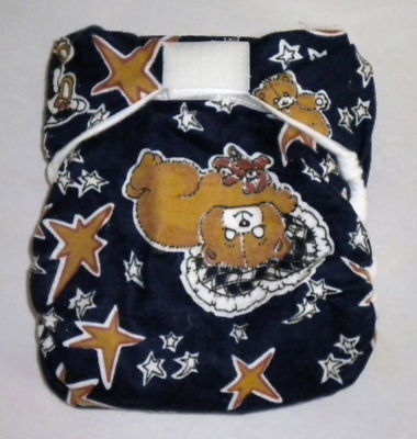 These nappies are made from 100% cotton printed flanellette on outside (as shown in pictures) with plain white 100% cotton flannellette on the inside. these nappies also have a sewn-in soaker pad of 3 layers of durable absorbent cotton towelling. These nappies will require a cover as they are made from only natural fibres and are great for mums who like the more natural option for your babys itty bitty bum. If baby is a heavy wetter or the nappy will need to be worn for an extended period, such as during in nap-time simply add an extra liner (also available) and the absorbency is imediatly doubled or (quadroopled depending which way you fold it) if you have a newborn and a toddler both in nappies these nappies are ideal as you do not need to waste your time or money buying upgrades of sizes.