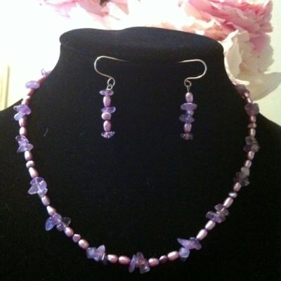 Fresh water pearls alternating with matching lavender quartz in all 3 pieces.