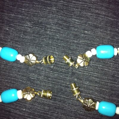 Fabulous turquoise color, white and gold necklace and matching bracelet.