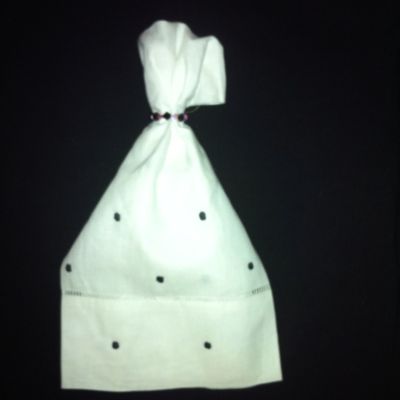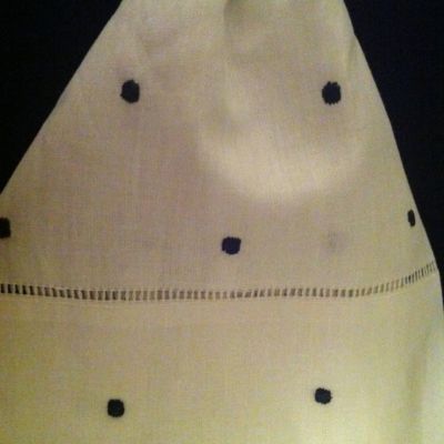 Fancy snow white beautiful fabric with black polka dots embroidered here and there.
