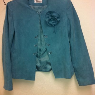 Beautiful med ladies aqua jacket. Perfect condition but unfortunately, I'll never fit into it :(.