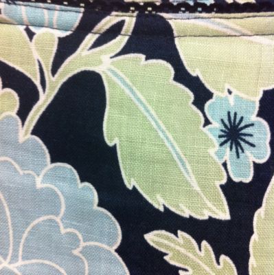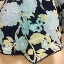 The background is a very dark navy blue with scattered pale blue Peony flowers and mint green leaves. I've worn it once but it was too small for me :(. My lack of loss us your gain! Perfect new condition !!