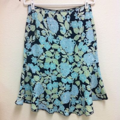 Summer Skirt A-line Blue Green Floral ! Way Too Cute !!