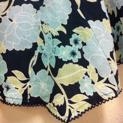 The trim is tiny embroidered rick rack and the hem is assemetrical with a wider 12" flounce.