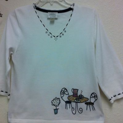 Tea Or Coffee Time Top Sweater Embellished Perfect !!!!