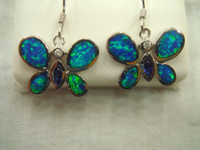 Blue Fire Opal & Tanzanite Butterfly Earrings 925 Sterling Silver
