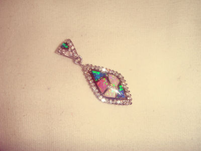 FIRE OPAL & WHITE TOPAZ Pendant 925 Sterling Silver