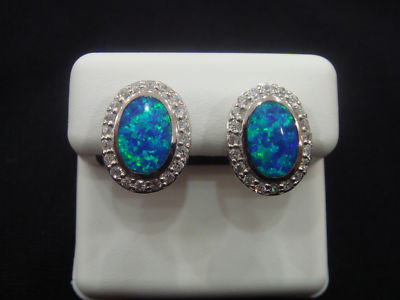 Blue Fire Opal & White Topaz 925 Sterling Silver Earrings