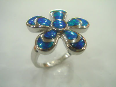 Magnificent brand new high quality Flower shape silver ring Size 5,5.5,6,7.5,8 with lab created blue inlay Fire Opals set on solid 925 sterling silver and stamped with 925. Please mention the size you would like to buy. Our silver is genuine 925 sterling silver and Rhodium plated for better quality and prolonged shine. You will receive the exact item pictured in a gift box. Please ask us for other sizes available. Thanks for looking and check out more items in http://stores.ebay.com/Aahna-Jewelryfor more great items and deals!