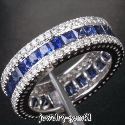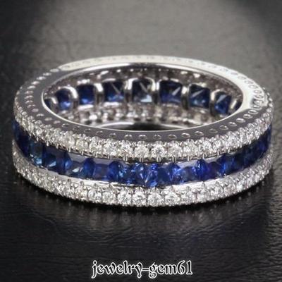 2.07Ct Solid 14Kt White Gold Sapphire VS Diamond Wedding Band Ring