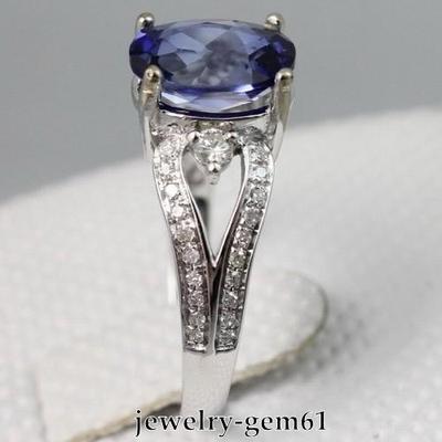 2.85Ct Oval 9*7MM Solid 14Kt White Gold VS Natural Diamond Sapphire Ring