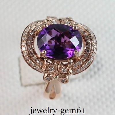 3.14Ct Oval 10*8MM Solid 14Kt Rose Gold Natural Diamond Amethyst Engagement ring