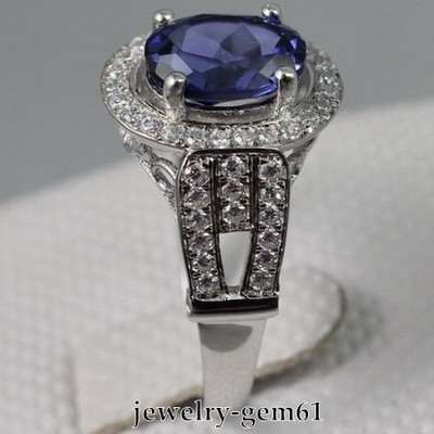 3.14Ct Oval 9*7MM Solid 14Kt White Gold VS Natural Diamond Sapphire Engagement Ring