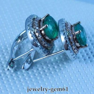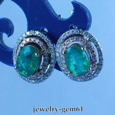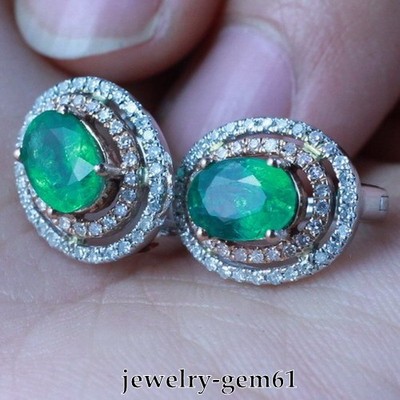 2.20Ct Oval 7*5MM Solid 14Kt Two-Tone Gold VS Natural Diamond Emerald Earrings