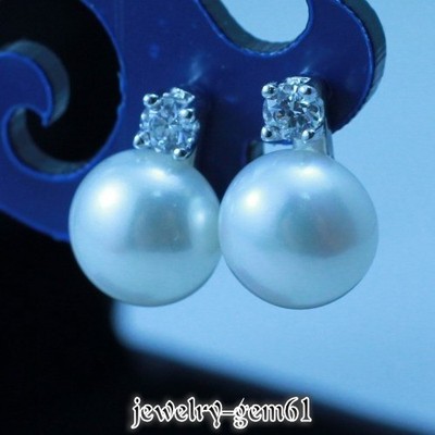 7.23Ct Round 9MM Solid 14Kt W-Gold Natural VS Diamond Fresh Water Pearl Earrings
