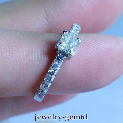 0.64Ct Princess Solid 14Kt White Gold VVS Natural Diamond Engagement Ring