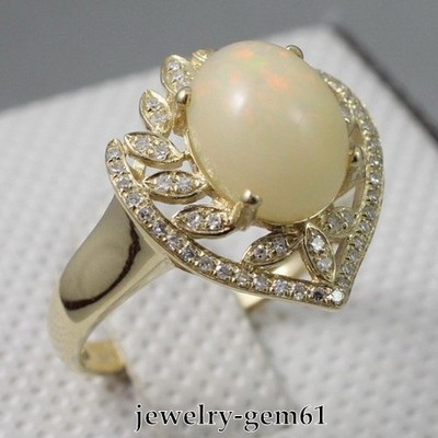 2.61Ct Oval 10*8MM Solid 14Kt Yellow Gold VS Natural Diamond Wollo Opal Ring |