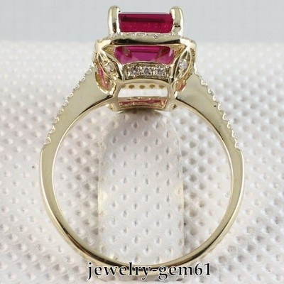 2.80Ct Emerald 9*7MM Solid 14Kt Yellow Gold VS Natural Diamond Rubellite Ring |