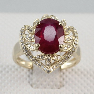 3.94Ct Oval 10*8MM Solid 14Kt Yellow Gold VS Natural Diamond Blood Ruby Ring |