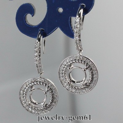 Round 6MM Solid 14Kt White Gold VS Natural Diamond Semi Mount Earrings