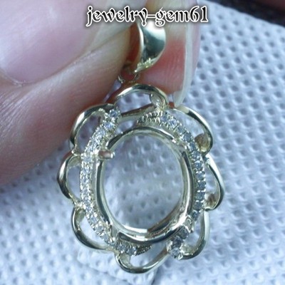 Oval 12*9.5MM Solid 14Kt Yellow Gold Natural Diamond Semi Mount Pendant