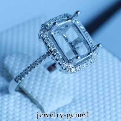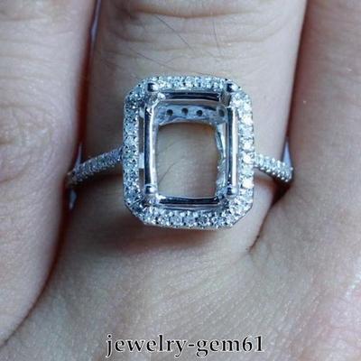 Emerald 9*7MM Solid 18Kt White Gold Natural Diamond Semi Mount Engagement Ring