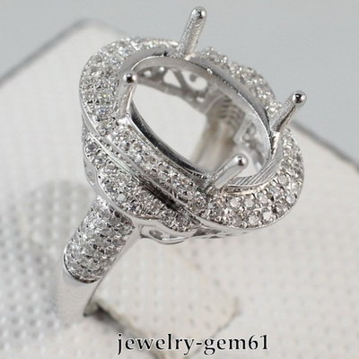 Oval 14*10MM Solid 14Kt White Gold VS Natural Diamond Semi Mount Engagement Ring