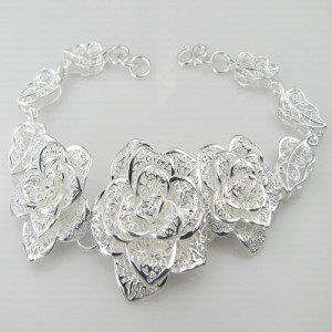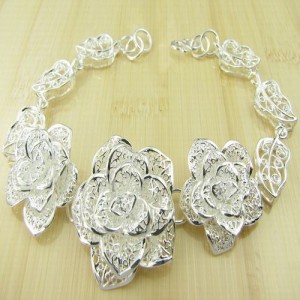 Lovely 925STERLING SILVER 19cm flowers Bracelet NEW