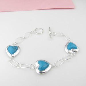 LOVELY 925STERLING SILVER heart Turquoise Bracelet NEW