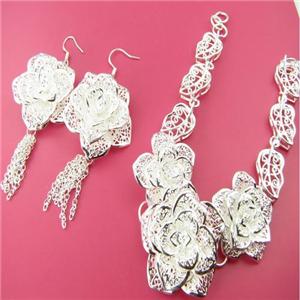 925STERLING SILVER Flowers Bracelet&earrings sets NEW