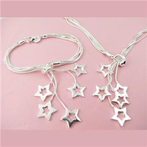 Lovely 925STERLING SILVER star Bracelet&Necklace sets