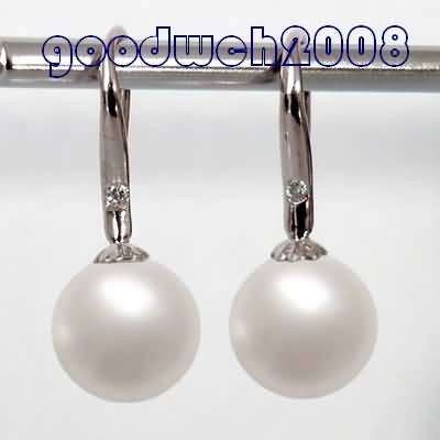 9MM Akoya White Pearl With Diamonds Hook Earrings White Gold