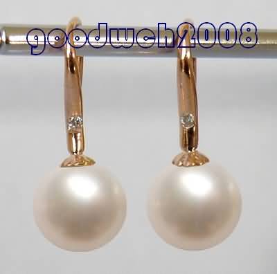 9MM Akoya White Pearl With Diamonds Hook Earrings Rose Gold