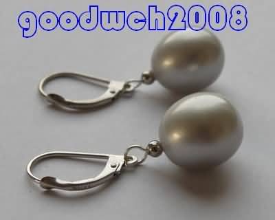 14k White Gold 13MM Silver Gray Pearl Leverback Earrings, the fashion & classic hand made fine jewelry for wedding, birthday, anniversary.