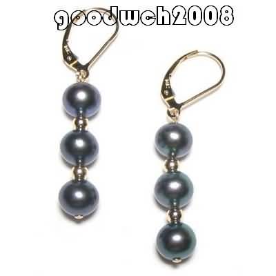 8MM Cultured Black Pearl Leverback Earrings 14k Yellow Gold
