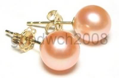 8MM Freshwater Pink Pearl Stud Earrings 14k Yellow Gold