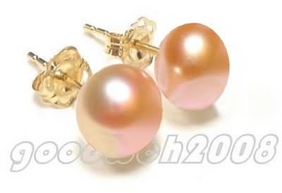 14k Yellow Gold Freshwater Pink Pearl Stud Earrings, the fashion & classic hand made fine jewelry for wedding, birthday, anniversary.