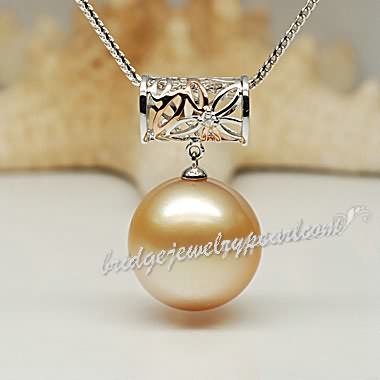 Flower Shaped 14k 18k Yellow Gold 10MM Akoya South Sea Golden Pearl Pendant, the fashion & classic hand made fine jewelry for wedding, birthday, anniversary.