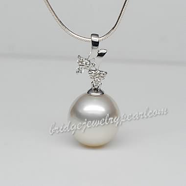 10MM Cultured Akoya South Sea White Pearl Diamonds Pendant 14k 18k White Gold, the fashion & classic hand made fine jewelry for wedding, birthday, anniversary.