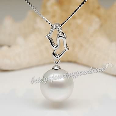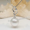 10MM Cultured Akoya South Sea White Pearl Diamonds Pendant 14k 18k White Gold, the fashion & classic hand made fine jewelry for wedding, birthday, anniversary.